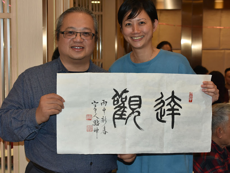 中巡過後,即展開抽獎,首位的中獎者是陳醫生……到最後是駱師的書法,全場哄動,連侍應也振臂說想要參加抽獎了……
